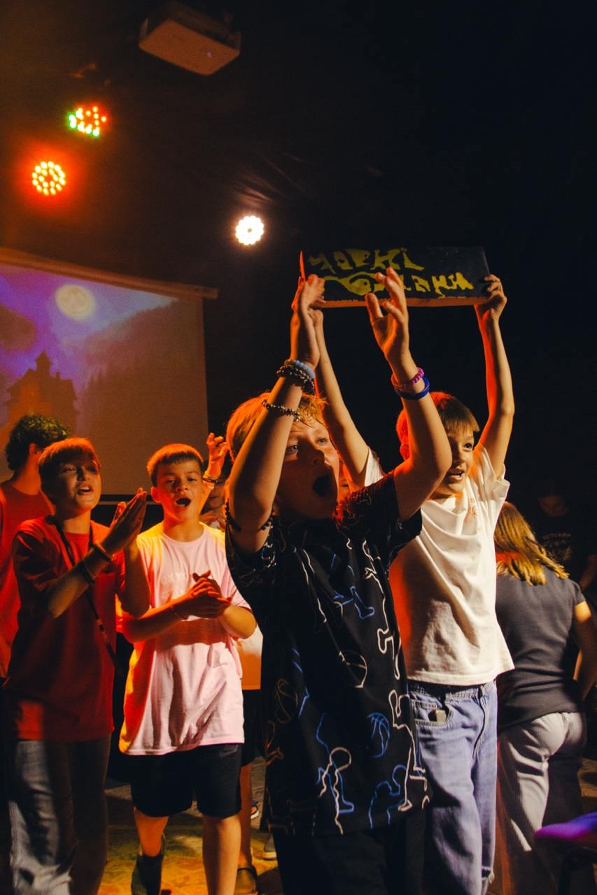 Выступление на вечерней программе. Каждый день команды получают креативные задачи для выступлений на вечерней программе, где каждый участник имеет возможность попробовать себя в роли музыканта, актера, ведущего, развивая свои таланты и уверенность в сцене. Каждый вечер завершается веселыми итогами дня, где дети ощущают гордость за свои достижения и вдохновение для новых приключений.