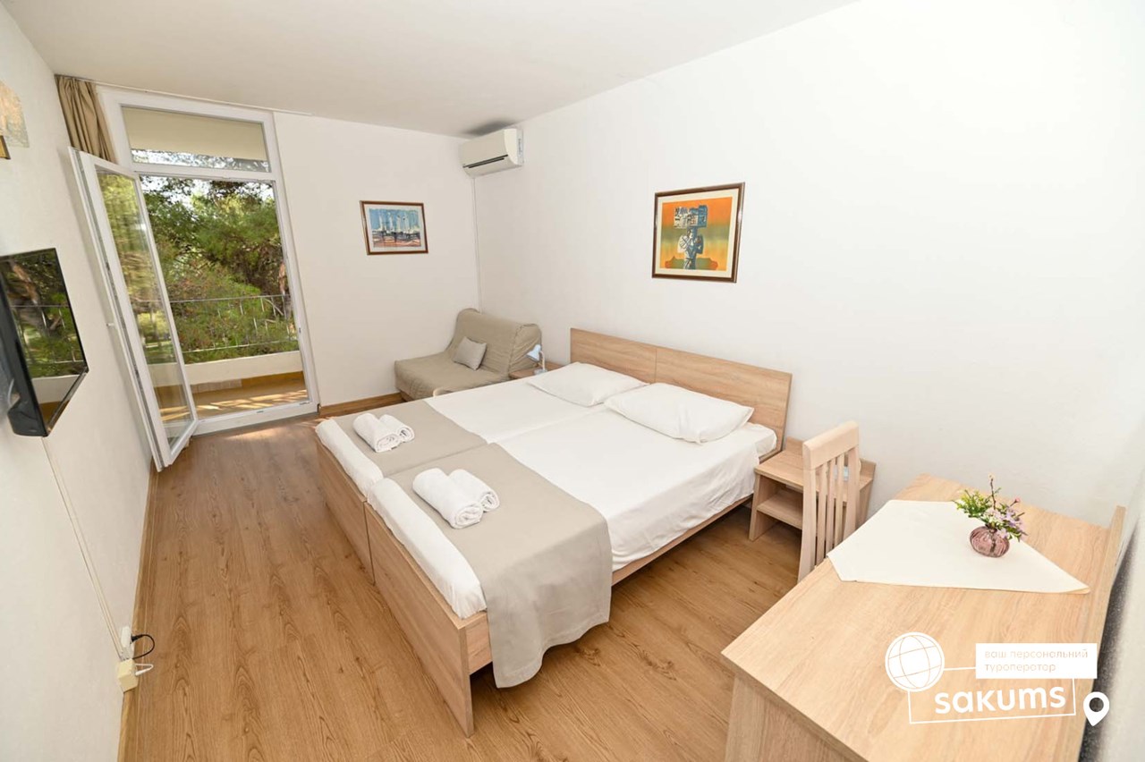 Проживание в двухместных номерах или двухместных номерах с дополнительной кроватью (по 3 человека) со всеми удобствами: