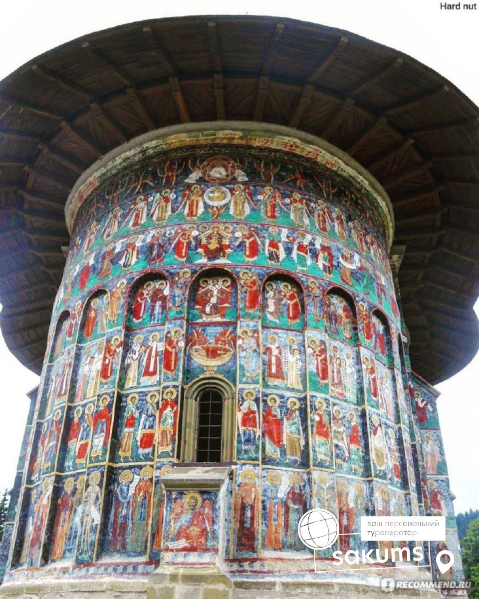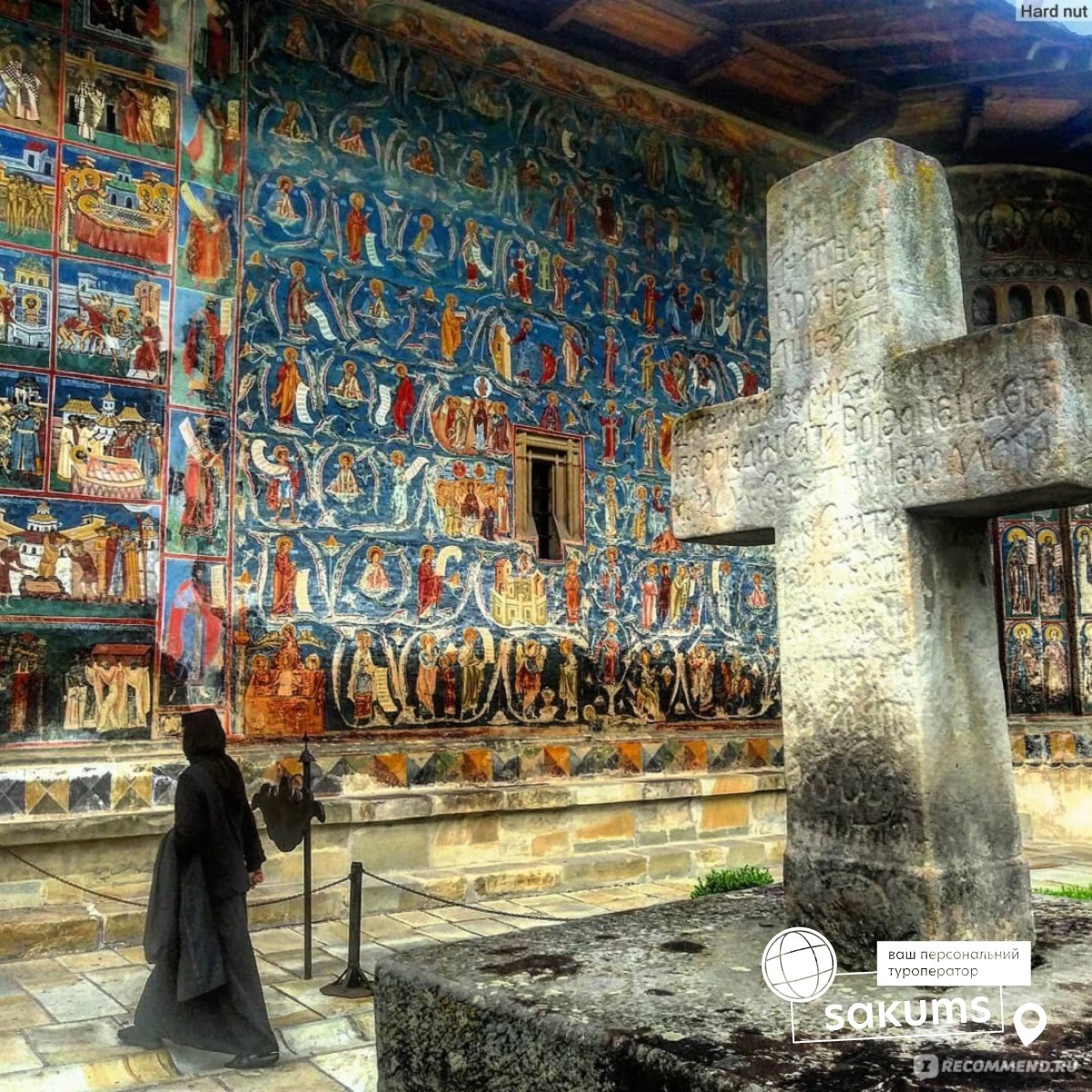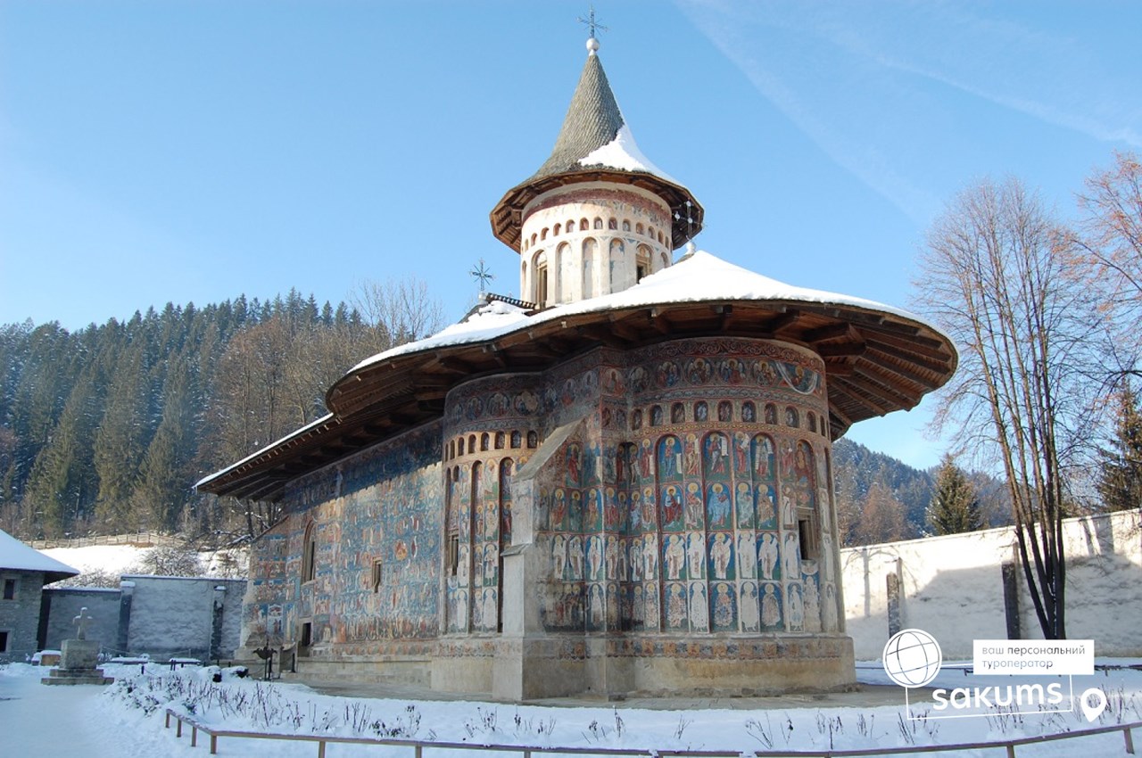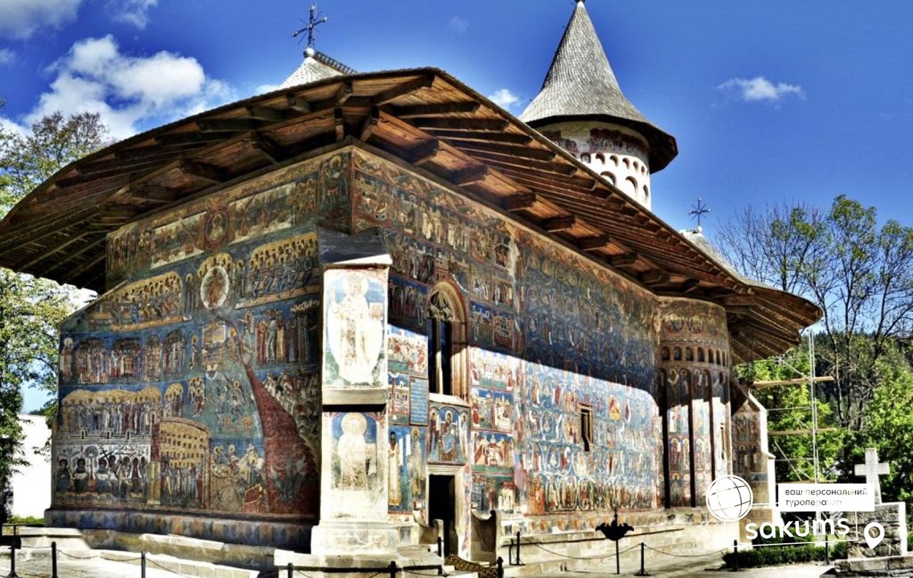 По дороге предлагаем посещение известного монастыря Воронец (трансфер 10 евро + вх. билет) находится под охраной ЮНЕСКО. Этот монастырь называют Сикстинской капеллой Востока за уникальную роспись XVI века на внешних стенах соборного храма Святого Георгия. Сам же храм, по свидетельству памятной надписи над входом, был построен за рекордно короткий срок: три месяца и три недели. Монастырская церковь, возможно, наиболее известная церковь Румынии. Роспись, иллюстрирующая библейские сюжеты, выполнена преимущественно на синем и голубом фоне. Самой интересной, по технике и цветопередаче, является фреска Страшного суда на западной стене церкви. Особенность в том, что роспись стен сделана не только изнутри, но и снаружи. Нигде в мире такого нет. Интересно, что фрески и по сей день не потеряли своей свежести и яркости. Секрет красок до сих пор не раскрыт.