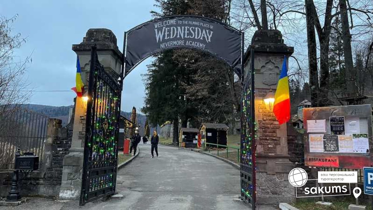 Замок Кантакузино (20 евро для взрослых / 15 евро для детей), резко ставший популярным после выхода хитового сериала "Wednesday", именно на территории этого замка снимали происходящие в Венздей Адамс в академии Невермор. Замок Кантакузино (Cantacuzino Castle) в неороманском стиле расположен в небольшом городке Буштень в Румынских Карпатах. Иногда его называют замок Замора (Zamora Castle) из-за расположения в географическом районе Замора. Построили замок в начале 20 века по заказу влиятельного румынского государственного деятеля Георге Григора Кантакузино, который был одним из самых богатых людей своего времени в Румынии.