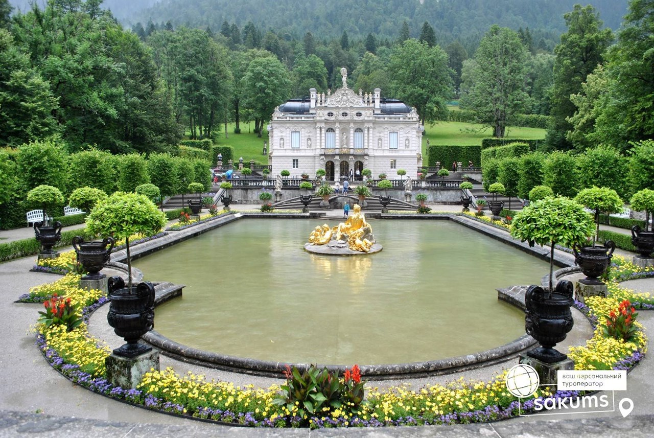 Палац Ліндергоф – справжній Маленький Версаль – це найменший з трьох замків, побудованих королем Людвігом II Баварським. Ліндергоф переповнений неймовірними скарбами і фресками із зображеннями міфологічних сцен. Найбільша кімната - особиста спальня короля, пишно прикрашена і увінчана кристальним канделябром зі 108 свічками і штучним водоспадом, призначеним для охолодження кімнати в літній час. Дивовижна краса, втілена в камені. Навколо замку лежить чудовий парк з терасами, каскадами, альтанками в різних стилях, квітковими клумбами, фонтанами, липовими алеями...тут навіть є підземне озеро в гроті Венери з чарівною підсвіткою і штучними хвилями, де в золотому човні в вигляді лебедя любив відпочивати король-романтик.