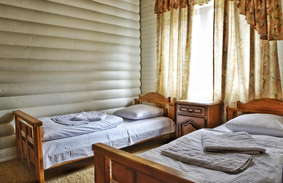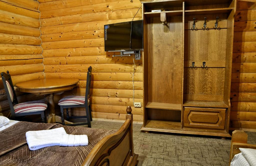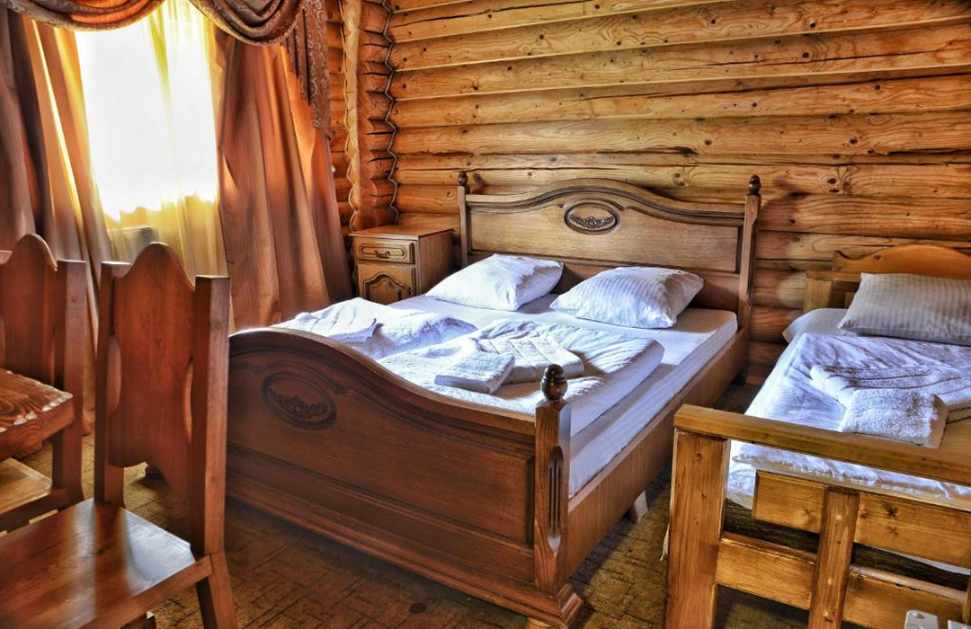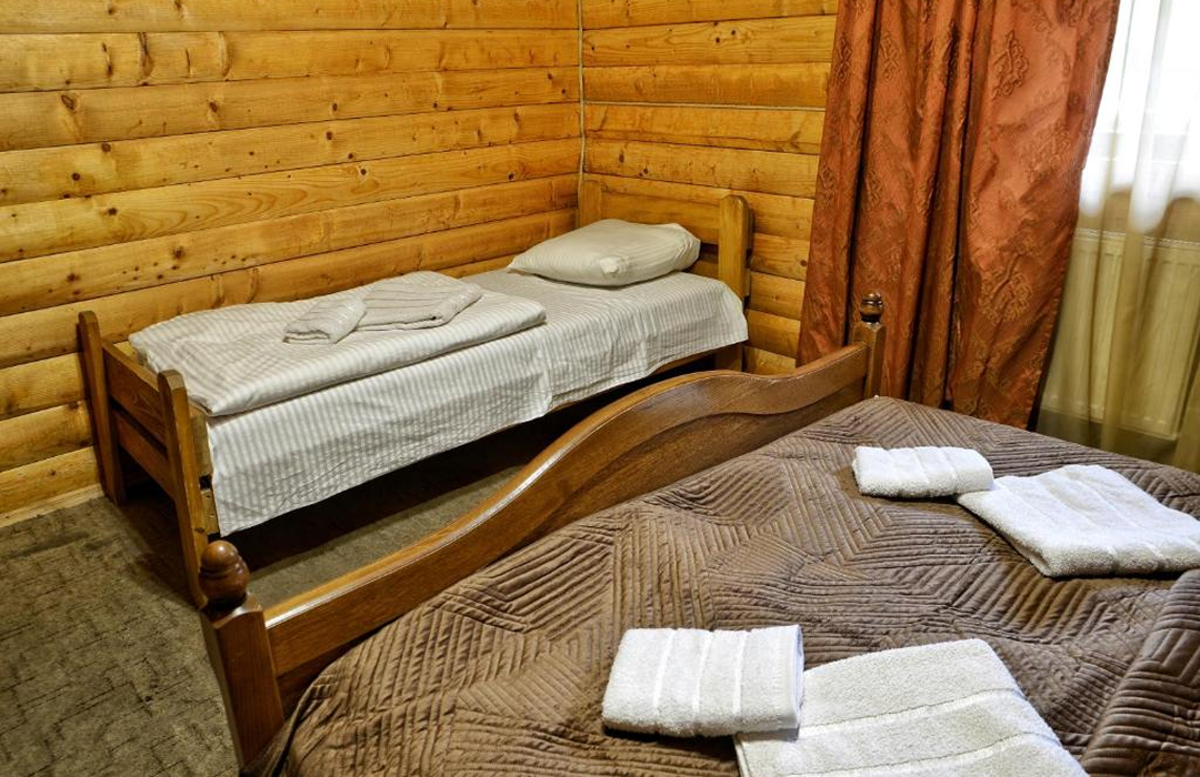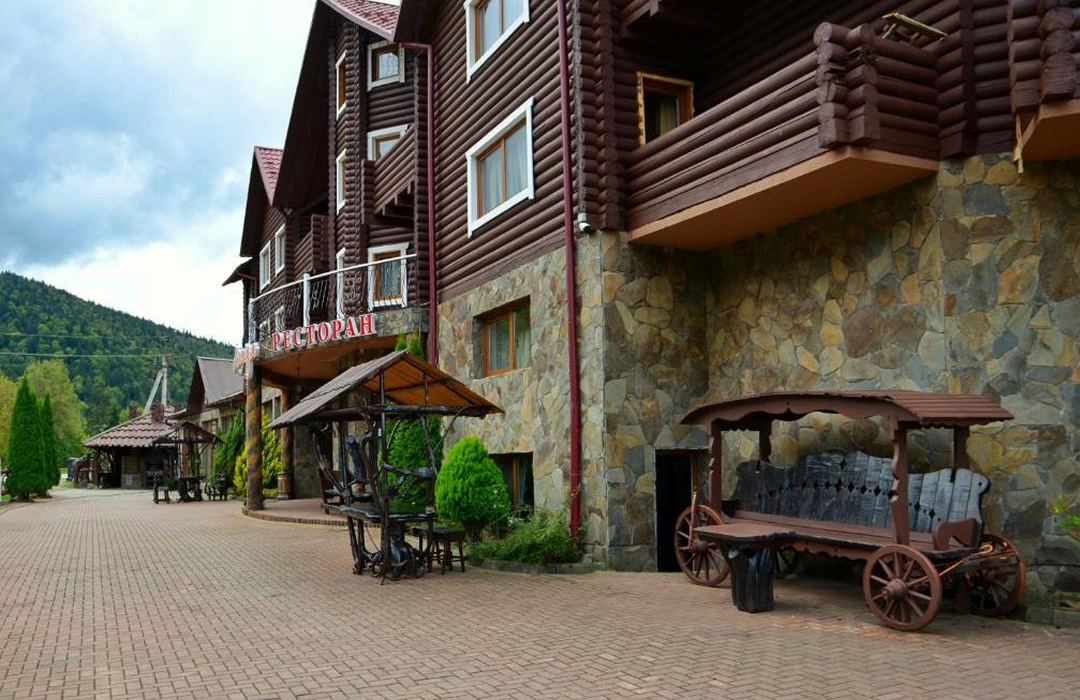 Затишний деревʼяний готель із власною територією та басейнами, що знаходиться в поселенні серед карпатського лісу.