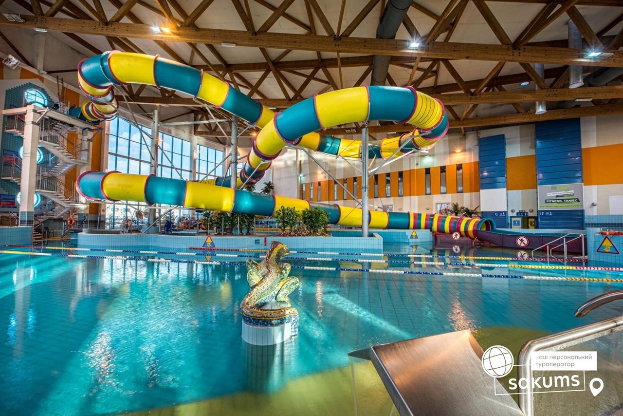 Краківський аквапарк (10 євро + 15 євро вхідний квиток). В аквапарку 3 басейни з доріжками для плавання, фонтанами та гідромачажем, декілька саун та безліч гірок, які вражають своїми розмірами: найдовша червона гірка "Саламандра" – 202 метри та не має аналогів в Європі. Це три хвилини фантастичного спуску, який закінчується запаморочливим падінням в воду. Для любителів швидких спусків тут є жовта гірка, а гірка фіолетового кольору зсередини здається абсолютно чорною, тому з'їзд в ній супроводжується світловими на звуковими ефектами. І це ще далеко не всі розваги, які чекають Вас при відвіданні Краківського аквапарку.
