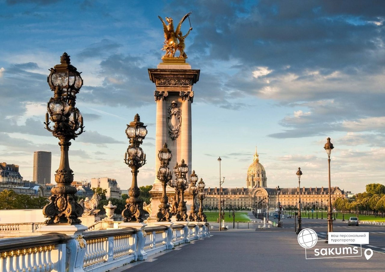 - Відправимось в Париж – місто, наповнене коханням і романтикою. Тут ви знайдете абсолютно все: музеї зі світовим ім'ям, найвідоміші магазини, цікаві пам'ятки, затишні ресторани і найромантичніші місця. Відправимось в круїз на кораблику по таємничій річці Сені. Сена – не тільки річка, а й, по суті, головна вулиця міста. Насолодимося красою Парижу у вечірньому вбранні... Нас підкорюватимуть і захоплюватимуть: велична Тріумфальна Арка, магія мосту Мірабо, Марсове поле, незрівнянні Єлисейські поля і оглядовий майданчик Трокадеро, район Ла Де Фанс. На завершення екскурсії нас зачарує неперевершена красуня - мерехтлива Ейфелева вежа.