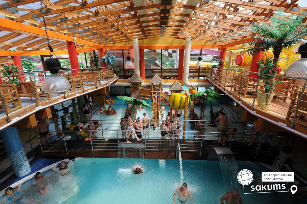 А закріпити набуті знання пропонуємо в аквапарку «Aquacity» (33 євро дорослі / 25 євро діти, вхідний квиток на 3 години врахований у вартість) – унікальне місце, де Ви можете розслабитись і отримати задоволення від купання в критих і відкритих термальних басейнах, побачити лазерне шоу і розважитися, спускаючись на гірках. Це буде весело!